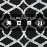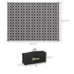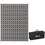 Upgrade your outdoor space with this waterproof polypropylene outdoor rug, designed for camping, patios, RVs, and picnics. The reversible black and white clover pattern offers two stylish looks in one, while the durable plastic straw construction ensures longevity. This lightweight and portable rug comes with a convenient carrying bag, making it easy to transport and store. The UV-treated fabric resists fading, and the reinforced edges prevent fraying. Perfect for backyards, decks, beaches, and more, this large 9′ x 12′ rug creates a cozy outdoor setting.