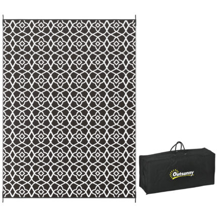 Upgrade your outdoor space with this waterproof polypropylene outdoor rug, designed for camping, patios, RVs, and picnics. The reversible black